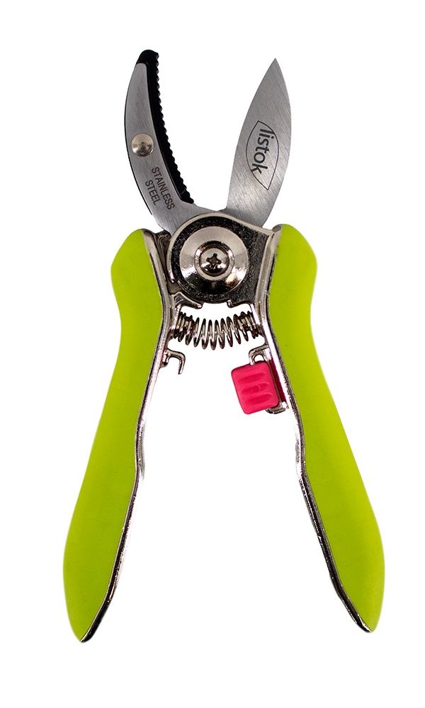 Секатор LISTOK LJH-739AA-1 с упорной пластиной и фиксатором.Идеально подходит для применения в саду. Обеспечивает удобное и ровное срезание. Тефлоновая поверхность лезвия обеспечивает легкость хода и защиту от коррозии...