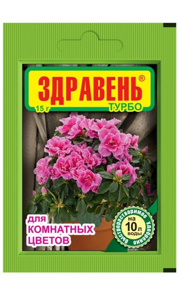 «ЗДРАВЕНЬ ТУРБО» увеличивает число побегов и листьев, способствует длительному и обильному цветению, более яркой окраске цветов и листьев. Укрепляет иммунитет растений и снижает негативное влияние ошибок в уходе.