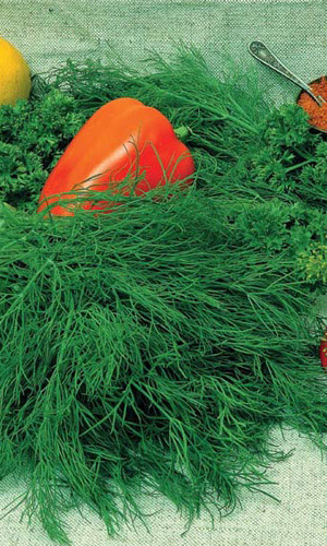 Высокоурожайный раннеспелый густооблиственный сорт. Листья сильнорассечённые, темно-зелёные, с сизым оттенком, обладают неповторимым насыщенным ароматом. Ценность: повышенное содержание эфирных масел, длительный период использования на зелень, хорошие вкусовые качества, высокая урожайность. Рекомендуется для потребления в свежем виде, консервирования и сушки...