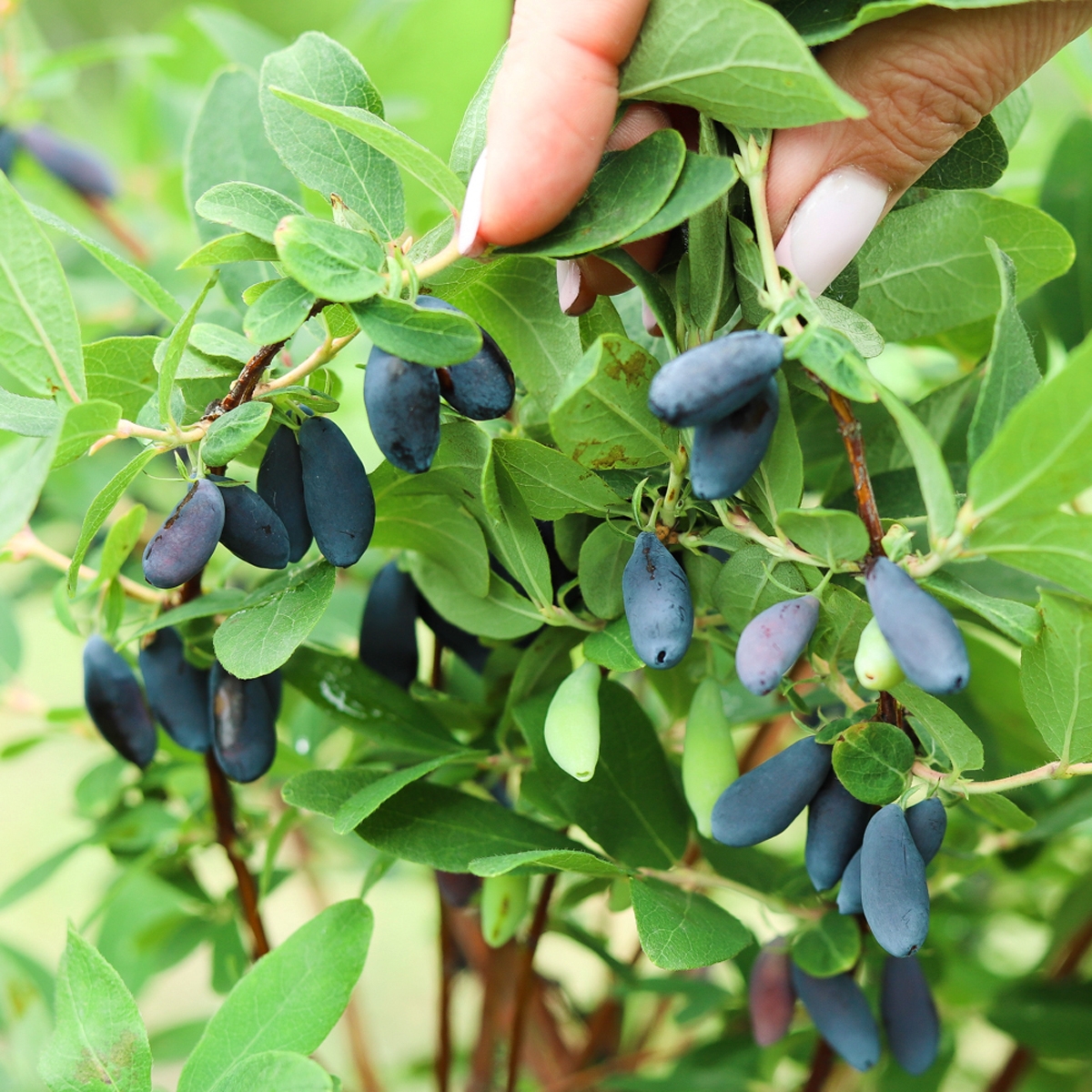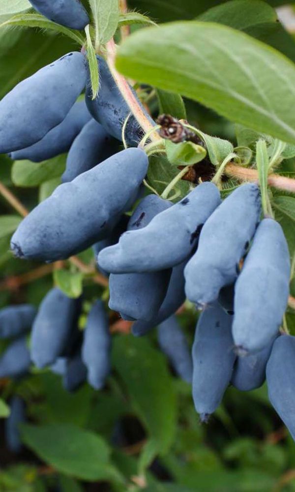 Жимолость Лазурная - среднеспелый, крупноплодный, морозостойкий сорт, с кроной в виде перевернутого конуса. Высотой до 1,7 м. Ягоды слегка вытянутые, с утолщением посередине. Плоды крупные, тёмно-синего с голубым налётом окраса, с кисло-сладким вкусом и черничным ароматом,...