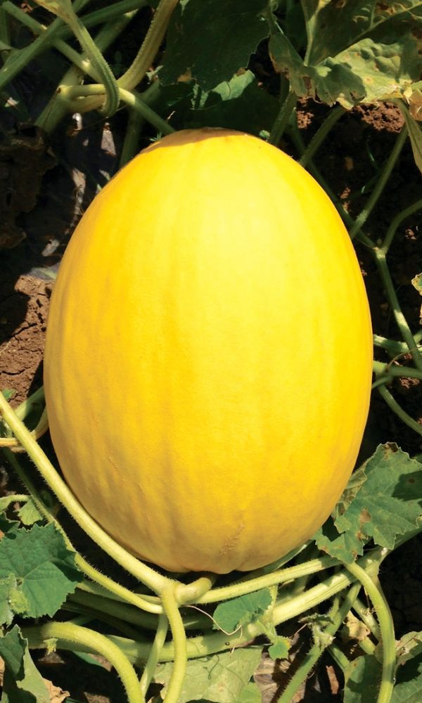 Сорт среднеспелый (77-95 дней от полных всходов до плодоношения). Растения длинноплетистые. Плоды массой 0,7-1,5 кг. Мякоть белая, плотная, сочная, сладкая, с прекрасным вкусом и ароматом. Сорт устойчив к бактериозу, хорошо переносит кратковременные похолодания. Плоды долго хранятся и отлично транспортируются. Урожайность 3-4 кг/м2...