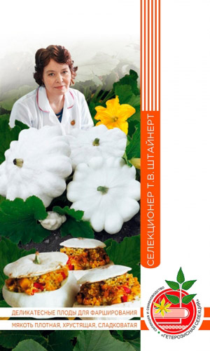 Среднеспелый сорт для открытого грунта, период от полных всходов до первого сбора плодов 55-67 дней. Растение кустовое.Плоды богаты клетчаткой, лецитином, витаминами А, С и витаминами группы В. Патиссоны низкокалорийны и питательны, рекомендуют людям, страдающим болезнями...